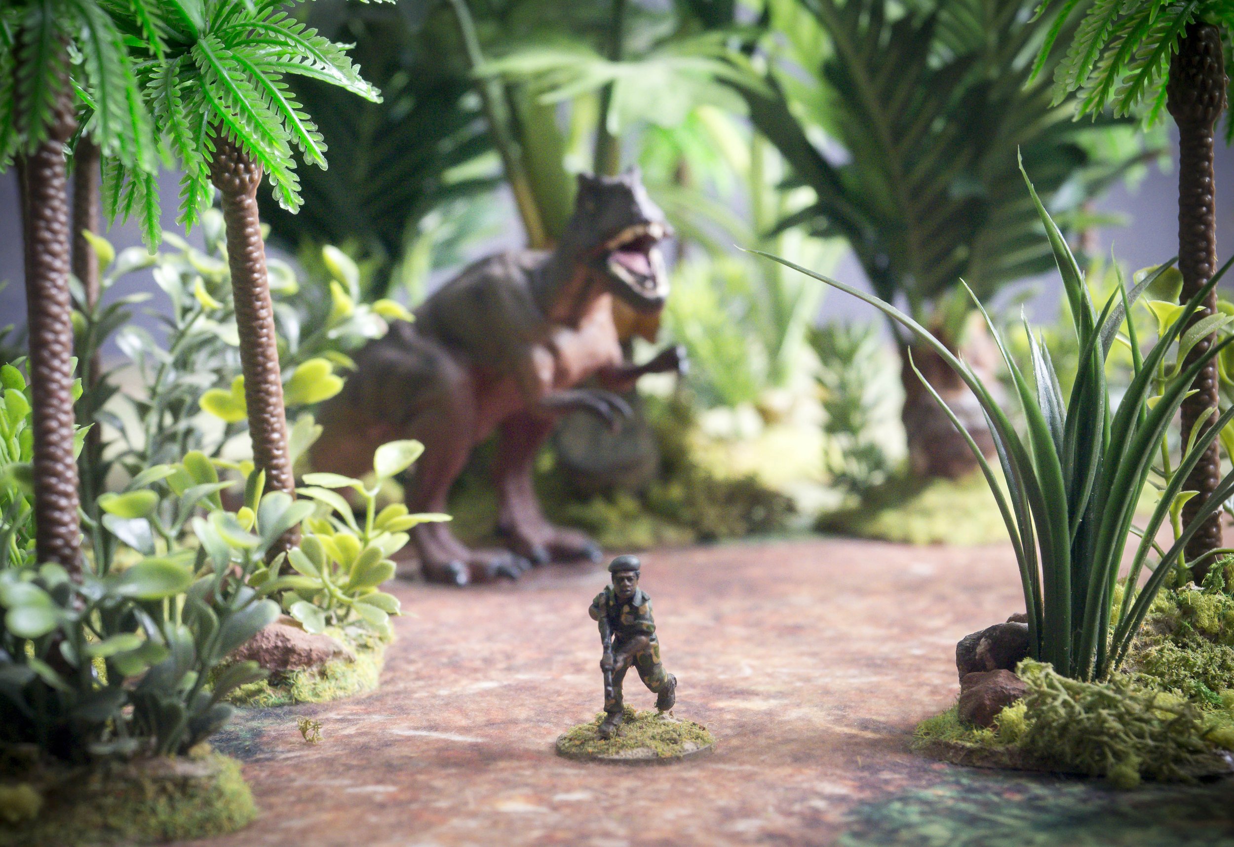 It’s a bugger when you turn up to work for a modern skirmish game and the player-gods decide to throw a dinosaur at you!