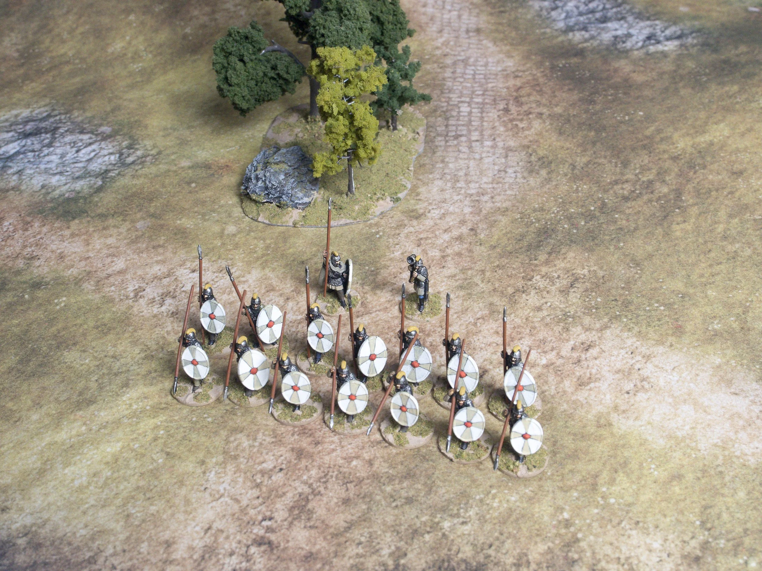15mm DBA (2.0/2.2 or 3.0 edition or Armati at a pinch). A tournament set using double sized (24 el) armies, covering Polybian Roman v Carthage v Successor (various). This is already under way, but stalled at fiddly Successor shield designs, so I will simplify and just get it done. Really like the rock-paper-scissors vibe of this game and these armies cover most of the troop types. Needs only a little clearly defined scenery on a set board size (have).