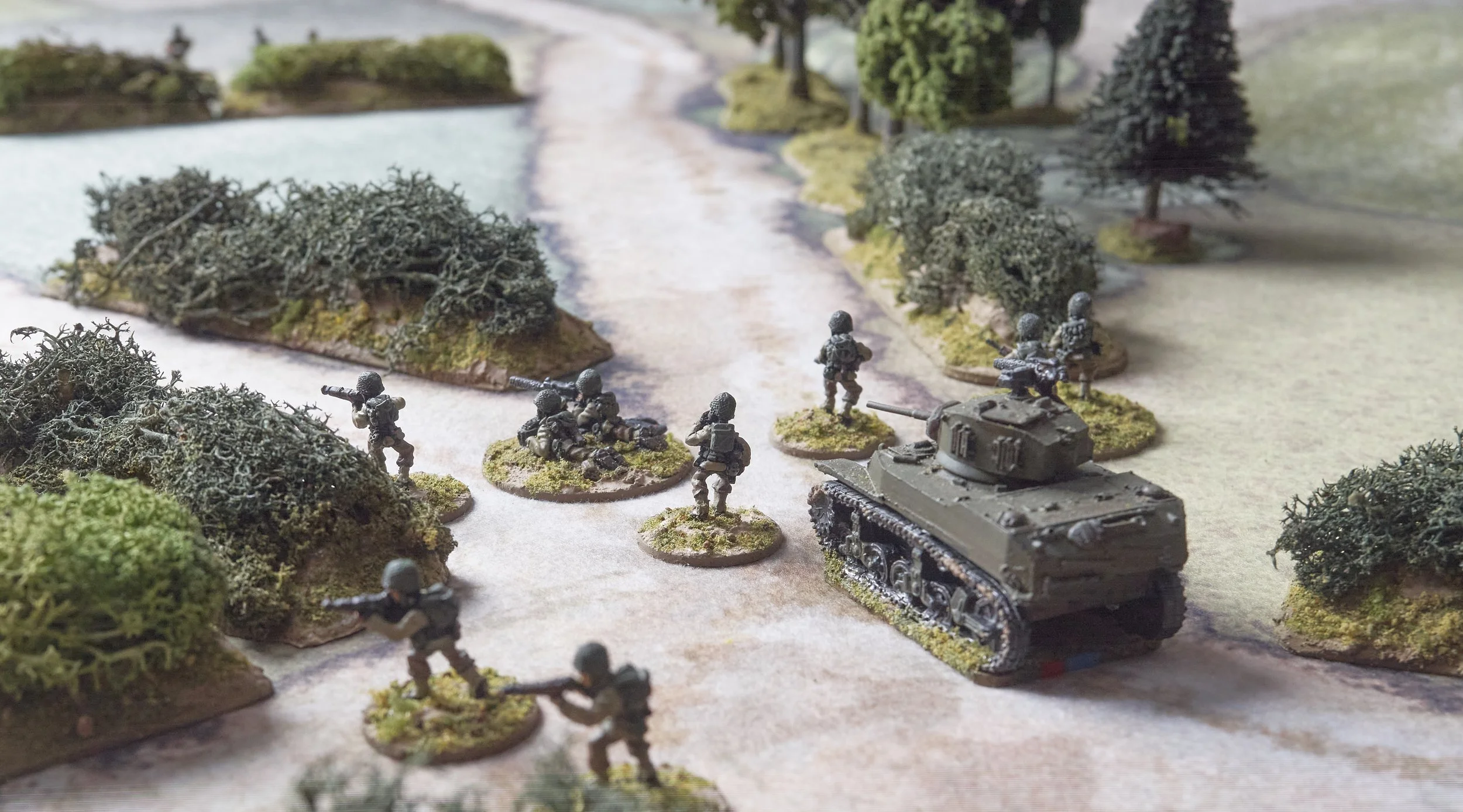 The enemy view of same. The Cigar Box range of mats includes some photo realistic ones and these more “model” like ones. All do their job well and contours are firm insulation foam hills placed under, which look great.