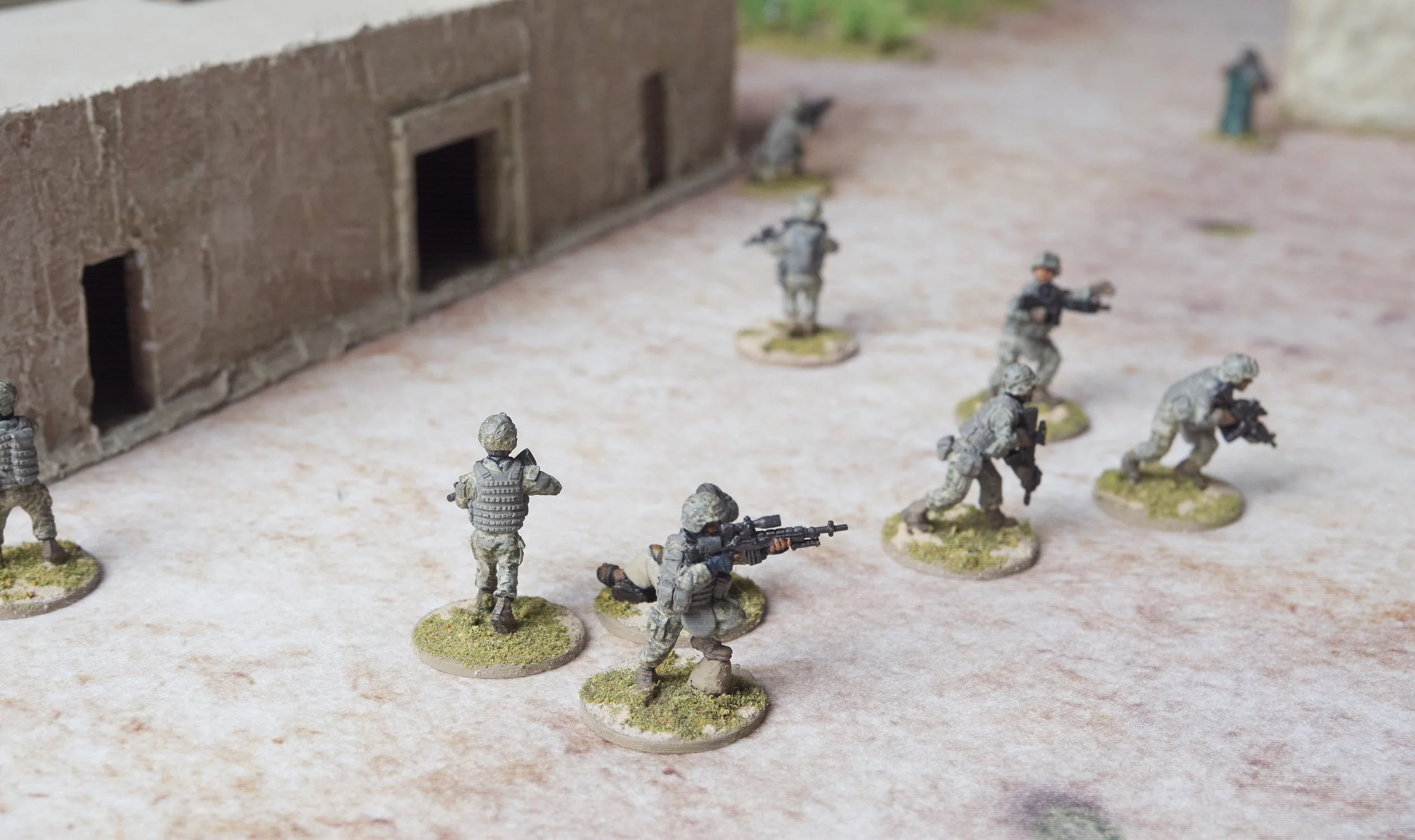 28mm moderns. I built up a comprehensive arid, jungle and urban range mostly around Eureka figs with others to fill holes. Afghan village, jungle and modern city as above.